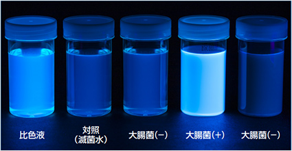 366 nmの紫外線を照射して蛍光が確認された場合、大腸菌陽性と判定
