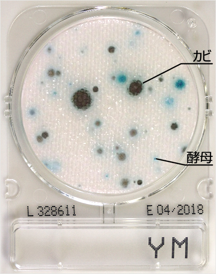 | 判定方法 | 25±1℃ 2~3日 酵母:緑~青色または白色~クリーム色のコロニー カビ:カビ自体の着色した綿状のコロニー |