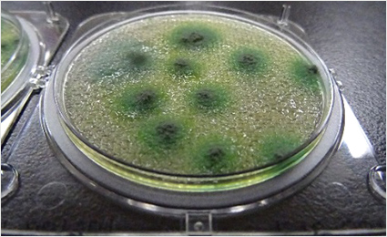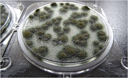コンパクトドライにカビのジャイアントコロニーを形成させると、カビの菌種特有の胞子の形状や色を観察できます。